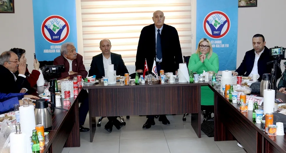 HABER: NEZİR KARAYÜN / ESENYURT - İstanbul Ardahan Kültür Evi, On Ocak Çalışan Gazeteciler Günü dolayısıyla her yıl olduğu gibi bu yıl da gazetecilerle bir araya geldi. Kültür Evi toplantı salonunda gerçekleşen buluşma, samimi atmosferi ve yöresel ikramlarıyla dikkat çekti. Programda Ardahan’a özgü kaz yemeği, çeçil peyniri ve erik hoşafı misafirlere sunuldu.